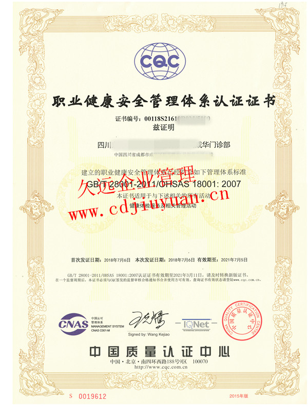 職業(yè)健康安全管理體系認(rèn)證證書(shū)