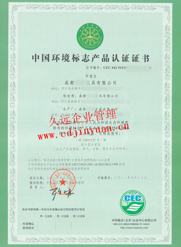 中國(guó)環(huán)保產(chǎn)品認(rèn)證證書(shū)