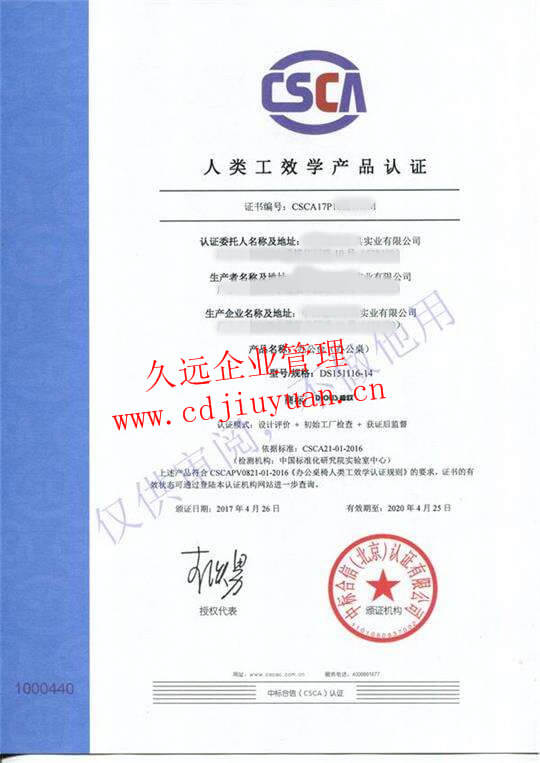 人類(lèi)工效學(xué)產(chǎn)品認(rèn)證證書(shū)