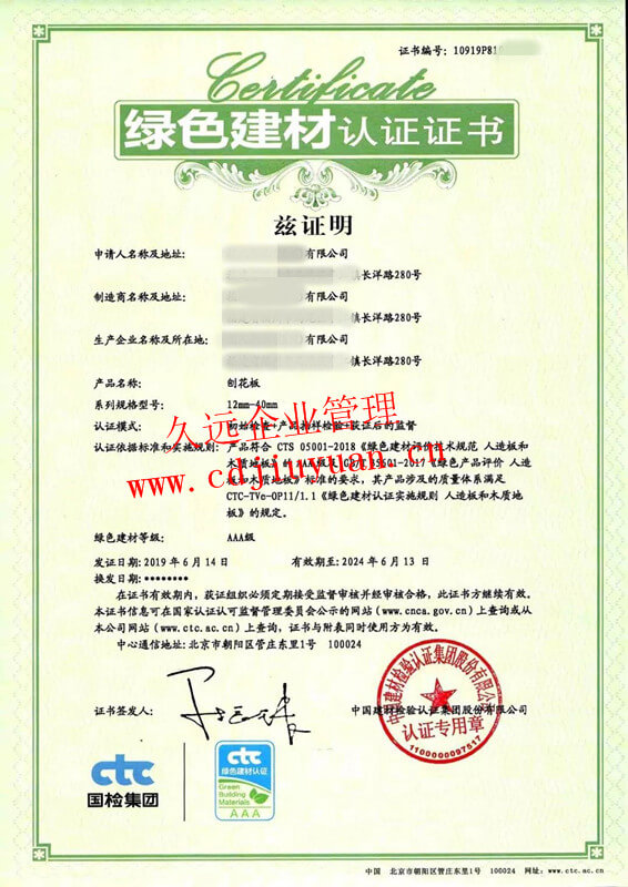 綠色建材認(rèn)證證書(shū)