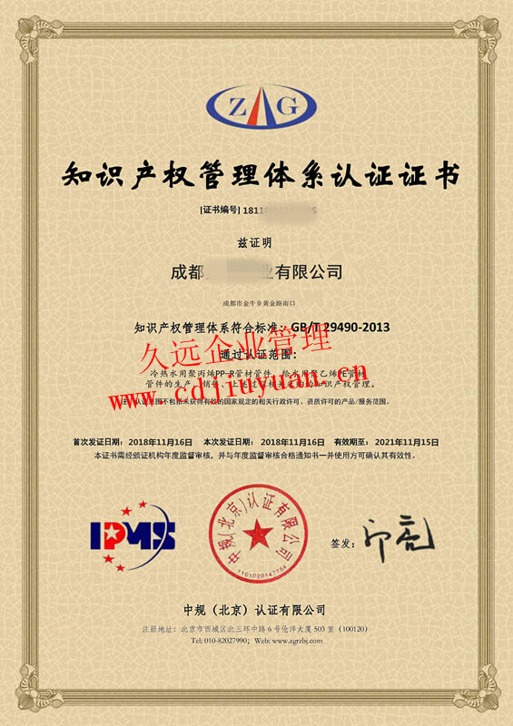 知識(shí)產(chǎn)權(quán)管理體系認(rèn)證證書(shū)